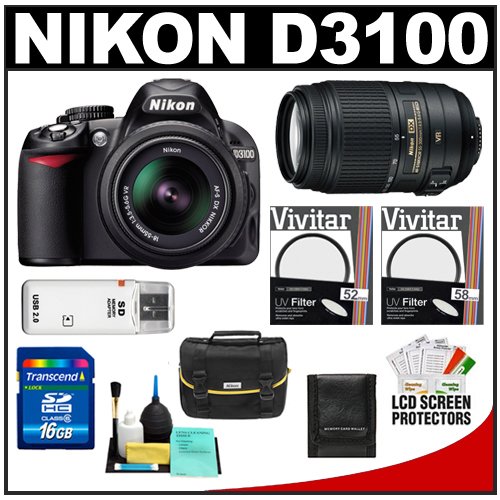 Nikon D3100 Digital SLR Camera & 18-55mm VR + 55-300mm VR Lens + 16GB Card + Filters + Case + Accessory Kit