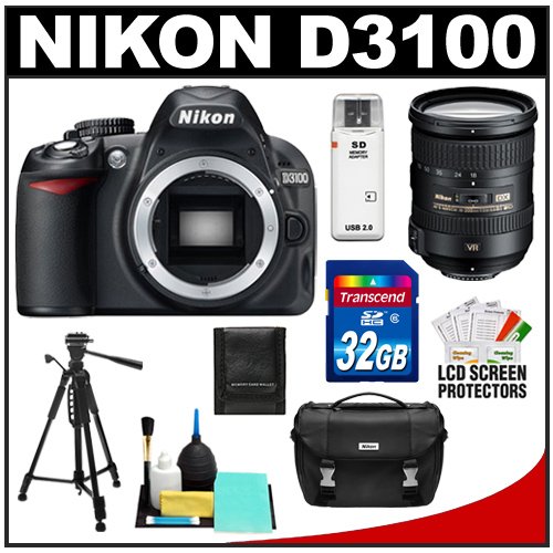Nikon D3100 Digital SLR Camera Body (Outfit Box) with Nikon 18-200mm VR II Lens + 32GB Card + Nikon Gadget Bag Case + Photo Tripod + Accessory Kit